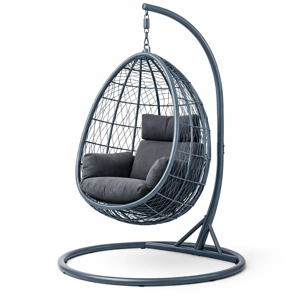 Eiförmiger hängesessel mit gestell aus metall mit polyesterkissen dunkelgrau